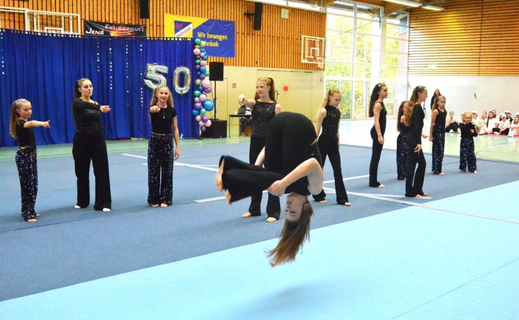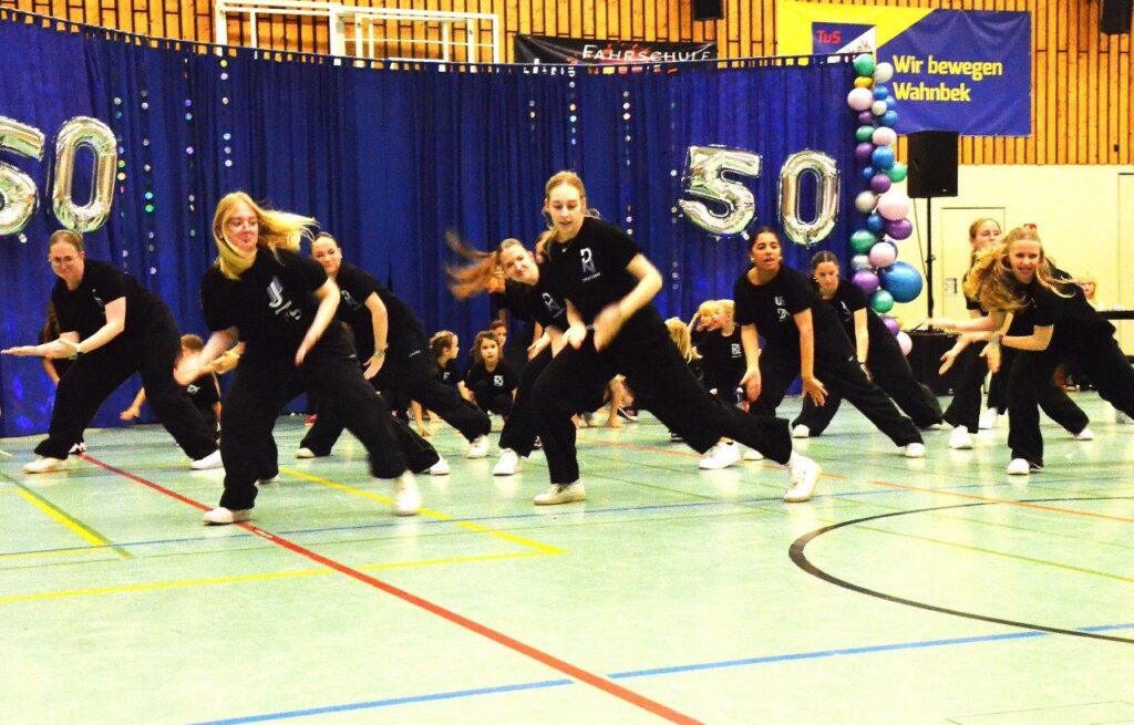 Nach der Pause, der TuS Wahnbek hatte für eine ausreichend bestückte Cafeteria gesorgt, sprangen dann die Turnerinnen des VfL Rastede als Turnshow Gruppe durch die Halle. Die nächste Gruppe setzte sich aus den jüngsten Hip-Hop Tänzerinnen und Kindern der nächsten Altersstufe vom SVE Wiefelstede zusammen und führten im Wechsel ihre sehenswerte Darbietung vor.