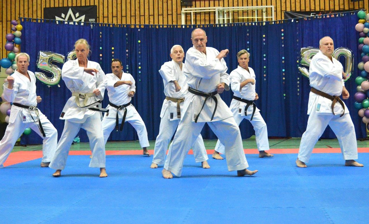Mit einem Augenzwingern erklärte David Topp über seine altersmäßig etwas betagten Herren vom Budo Dojo aus Rastede, dass sie den Altersschnitt doch gewaltig heben würden. Aber was dann diese Herren und eine Dame auf die Matte brachten, war schon ein Raunen in den Zuschauerrängen wert. Kampfkunst mit der einen oder anderen Abwehrtechnik mit Kraft und einer guten Körperbeherrschung.