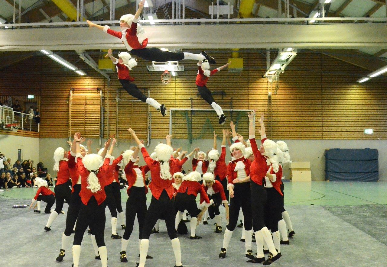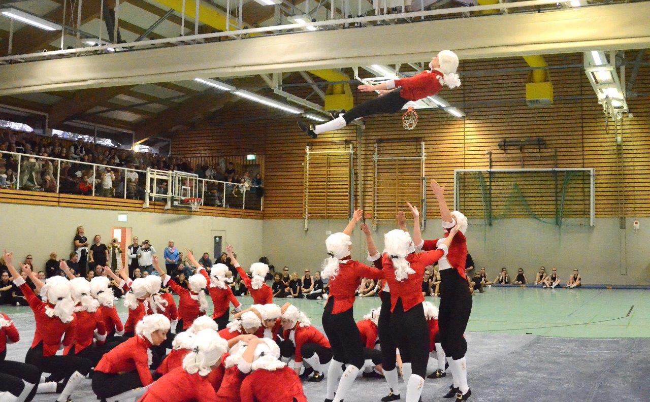 In der vorletzten Vorführung zeigten die Confinanza Youngstars vom TuS Westerloy das sich Turnen und Akrobatik gut miteinander verbinden lassen. Bei den Sprüngen und werfen der leichteren Kinder stockte den Zuschauern bisweilen der Atem. Den Schlussakkord setzten dann die Paradinos vom TV Elmendorf mit ihrem Showprogramm in sehr schönen mittelalterlichen Kostümen, die in der Tat ein Hauch von Mozart mit der entsprechenden Musik in die Halle zauberten. Zum großen Schlussbild kamen nochmal alle Gruppen in die Halle und stellten sich dem abschließenden tosenden Beifall der Zuschauer.