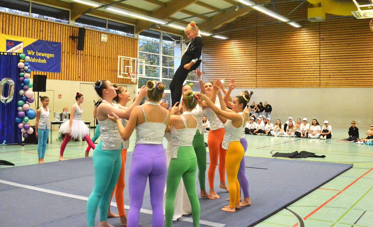 Daniela von Essen hatte das Programm in Absprache mit den Übungsleiterinnen und Leitern zusammen gestellt und es kam bei den vielen Zuschauern gut an. Die Halle an der Grundschule Wahnbek platzte förmlich aus allen Nähten. Viele Gruppen hatten den Aufruf, nicht allzu viele Zuschauer mitzubringen, beherzigt und so war es für alle ein kurzweiliger Nachmittag.