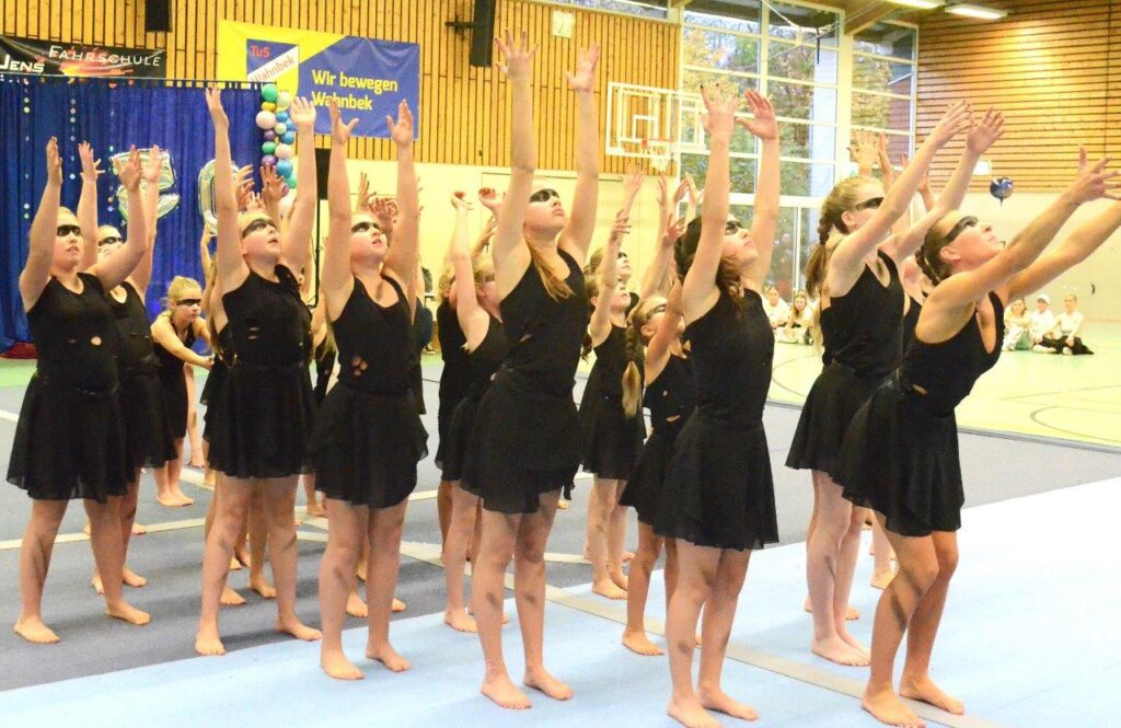 Die Dance Stars vom TuS Ocholt erzählten eine Geschichte aus der Zukunft mit Aliens und jungen Menschen und deren Verbundenheit. Der TuS Wahnbek und der TV Metjendorf arbeiten seid einigen Jahren im Bereich Tanzen zusammen und so machten sich etwa 80 Kinder und Jugendliche auf, die Halle vor den Zuschauerrängen fast komplett auszufüllen.
